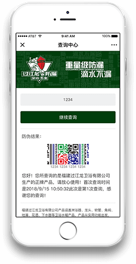 一物一码保证防伪码的单独性,让造假者无从下手,消费者查询可了解产品被查次数及时间,帮助消费者辨别真伪